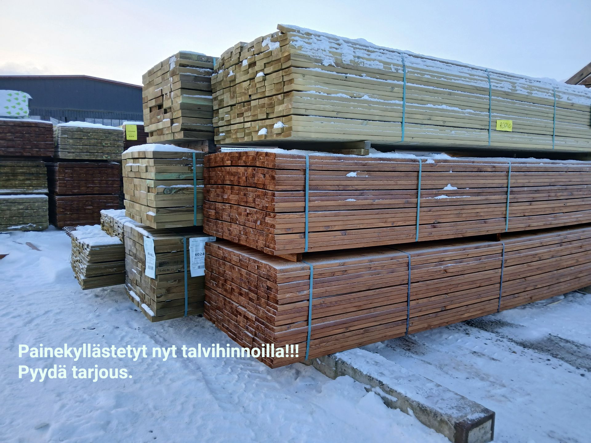 Tarjoustuotteet myydään aina siinä kunnossa kuin ne ovat, eikä tuotteilla ole vaihto- tai palautusoikeutta. Puutavara myydään nipuittain, ja tuotteiden varaus onnistuu ainoastaan maksamalla. Tutustu tarjouksiin ja pyydä tarvittaessa lisätietoja – palvelemme mielellämme!